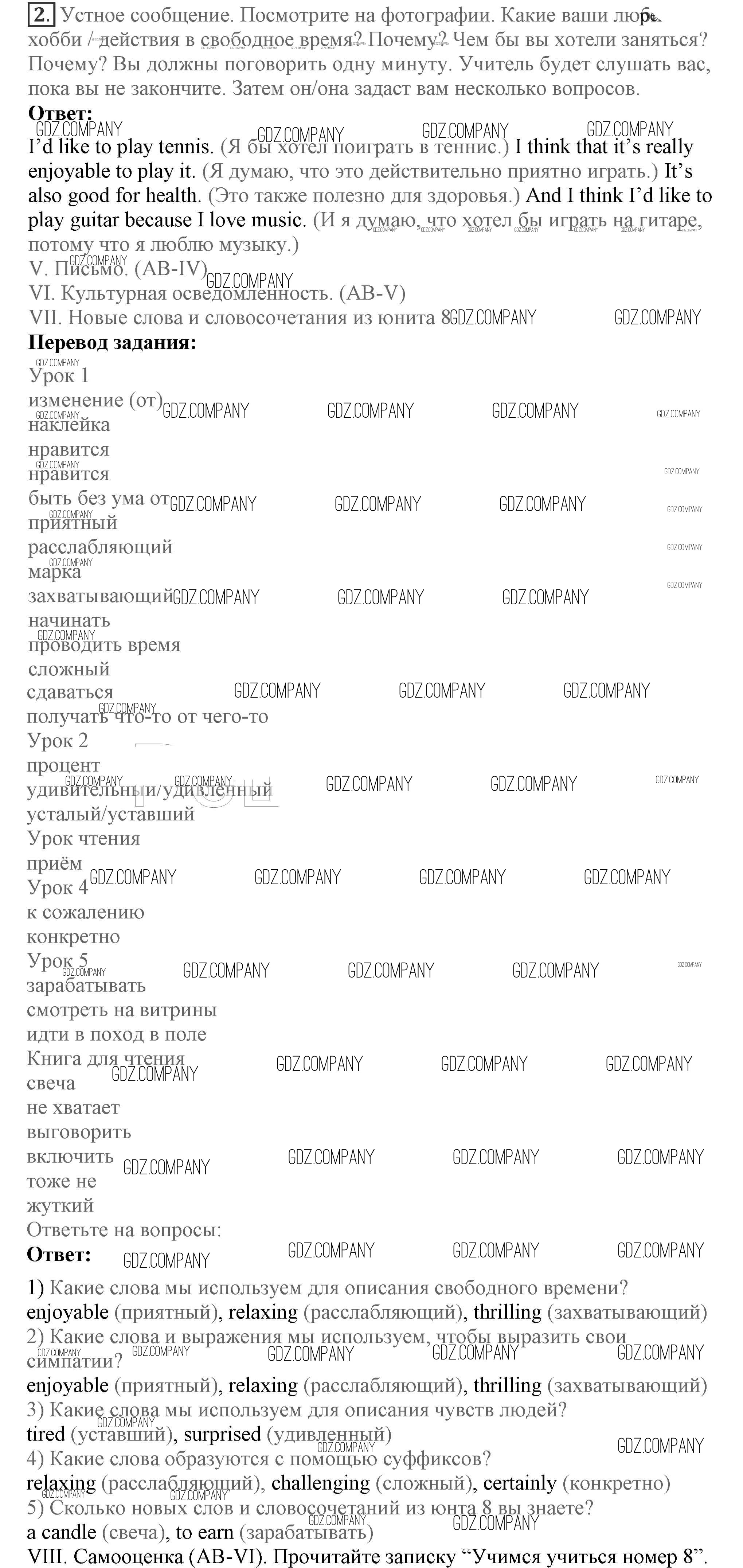 Здесь готовые ответы по Английскому языку за 7 (седьмой) класс от Кузовлев, Лапа, Перегудова Учебник УМК (издательство: Просвещение от 2015 г.) № 2