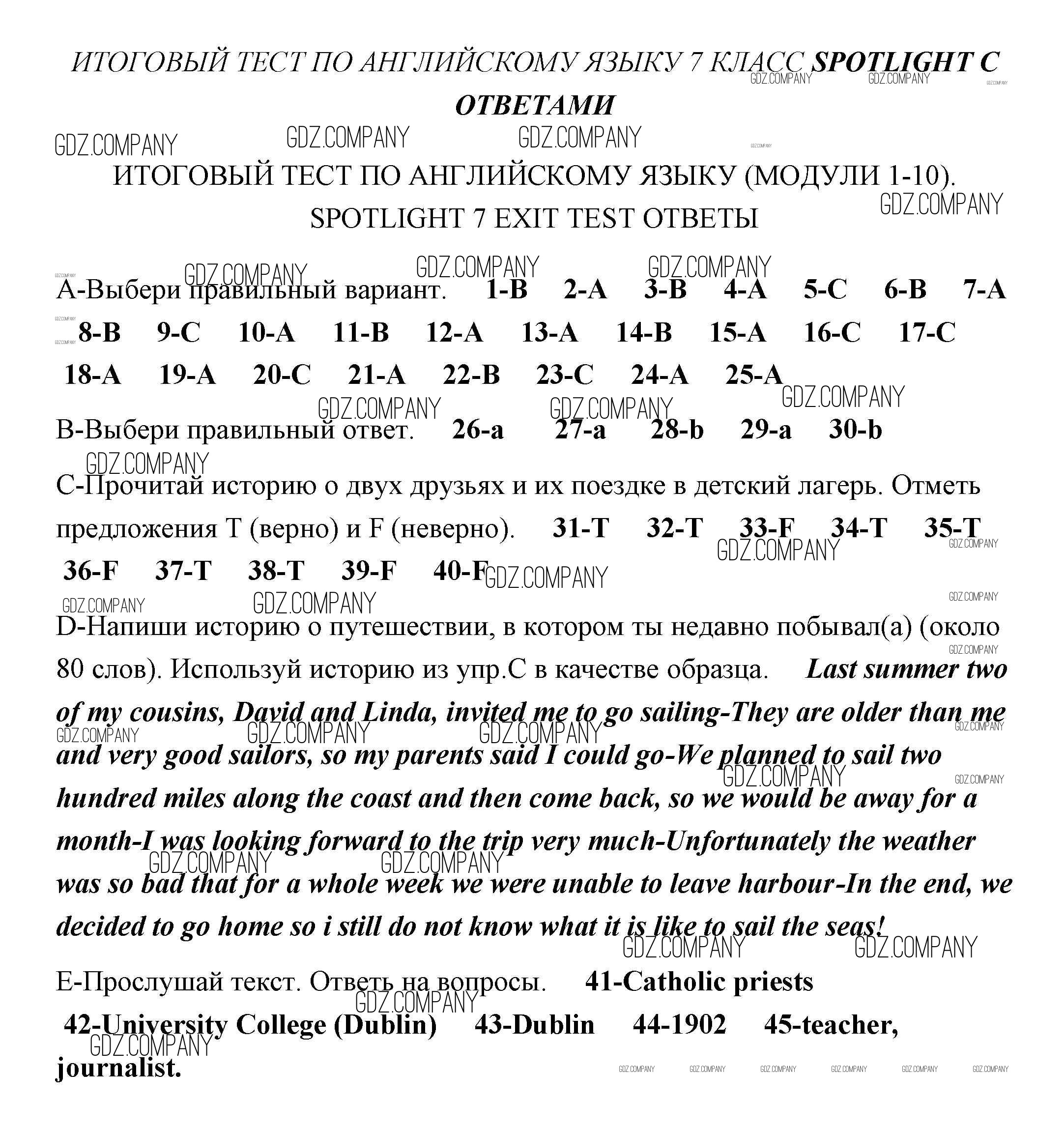 Здесь готовые ответы по Английскому языку за 7 (седьмой) класс от Ваулина, Дули, Эванс, Подолянко Контрольные задания Spotlight (издательство: Просвещение от 2015 г.) № 1