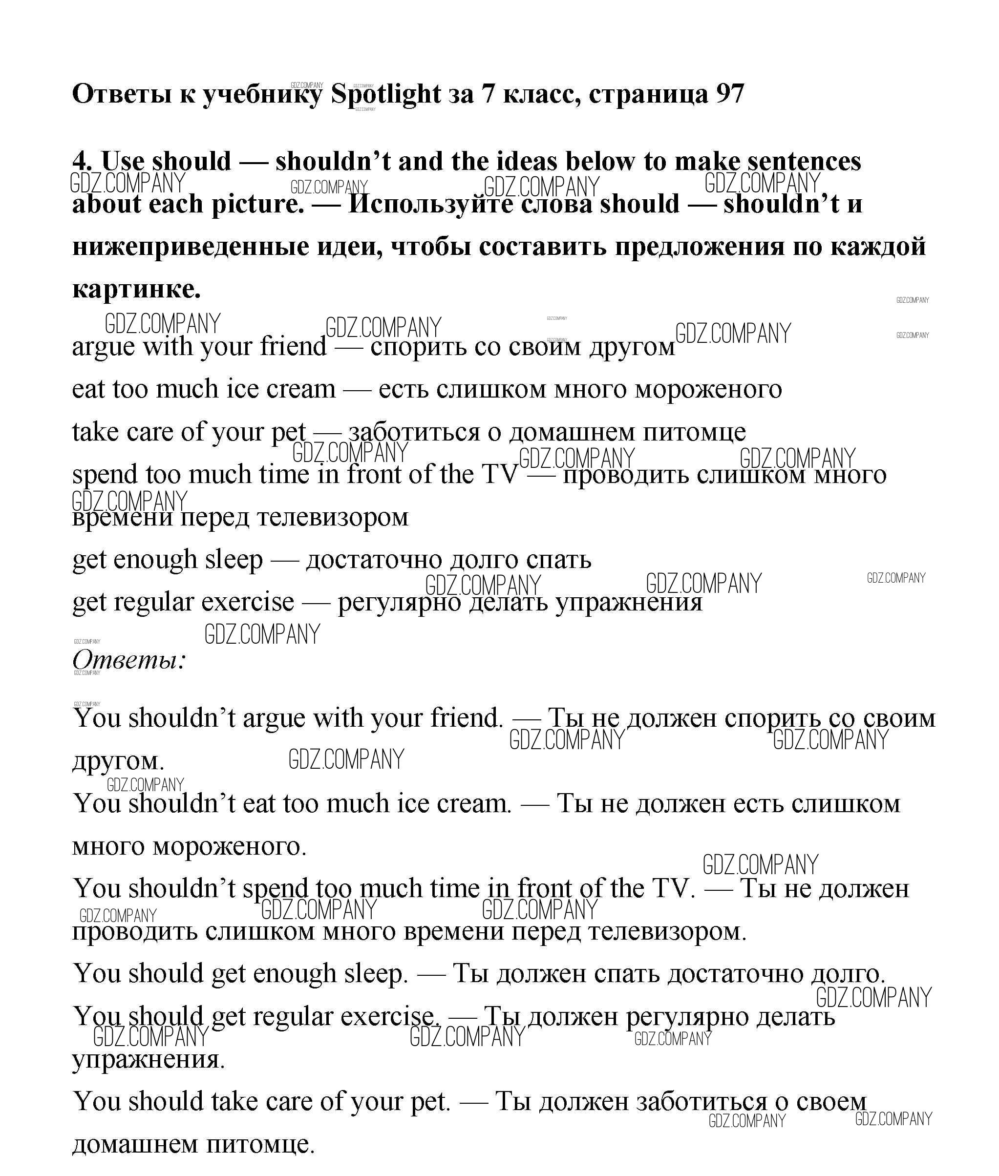 Здесь готовые ответы по Английскому языку за 7 (седьмой) класс от Ваулина, Дули, Эванс, Подоляко Учебник Spotlight (издательство: Просвещение от 2019 г.) № 4