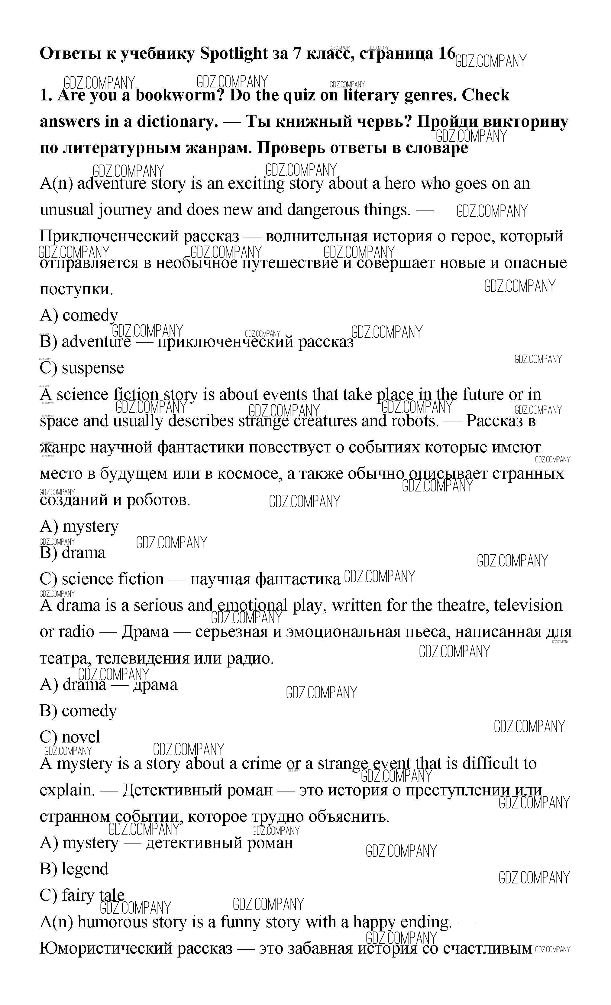 Здесь готовые ответы по Английскому языку за 7 (седьмой) класс от Ваулина, Дули, Эванс, Подоляко Учебник Spotlight (издательство: Просвещение от 2019 г.) № 1