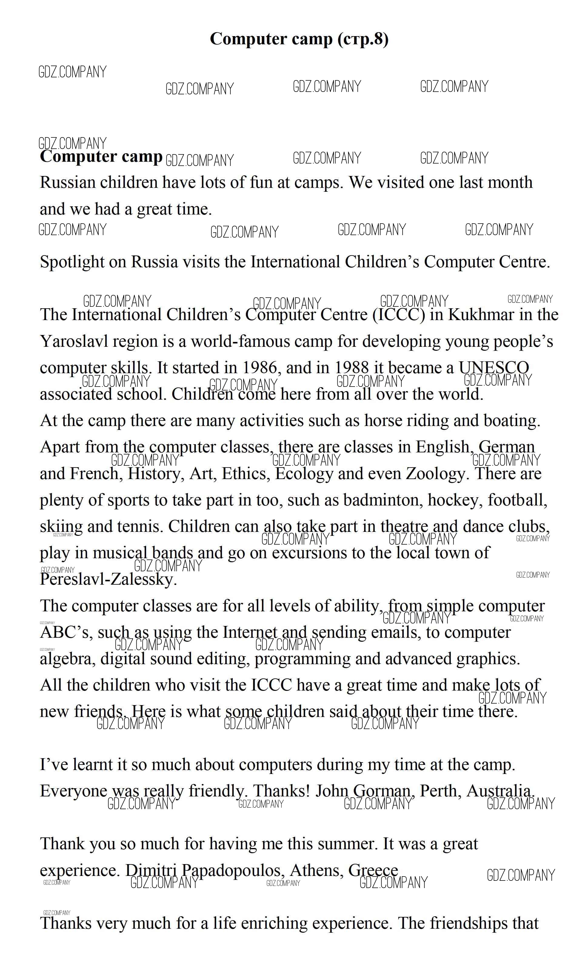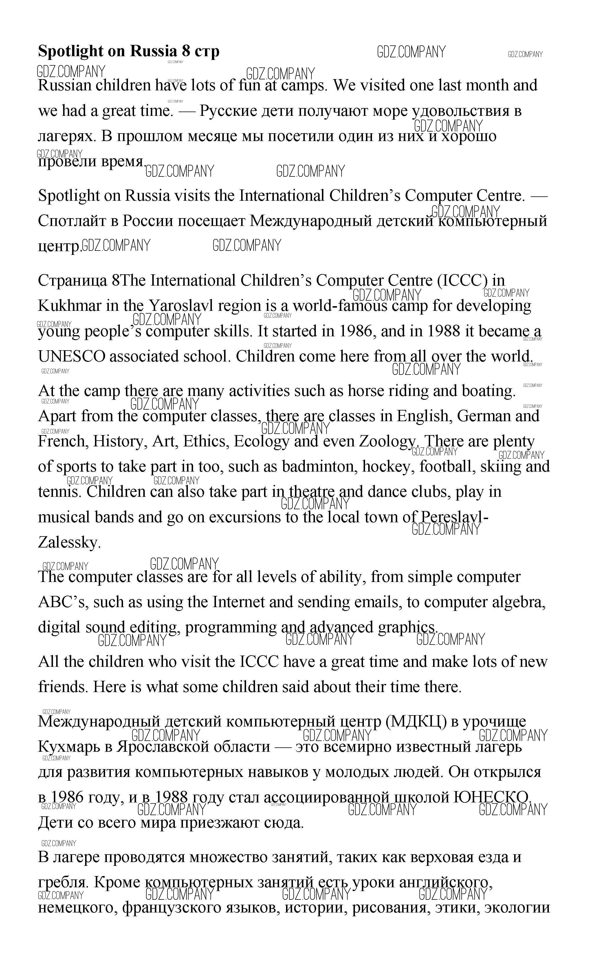 Здесь готовые ответы по Английскому языку за 7 (седьмой) класс от Ваулина, Дули, Эванс, Подоляко Учебник Spotlight (издательство: Просвещение от 2019 г.) № 8
