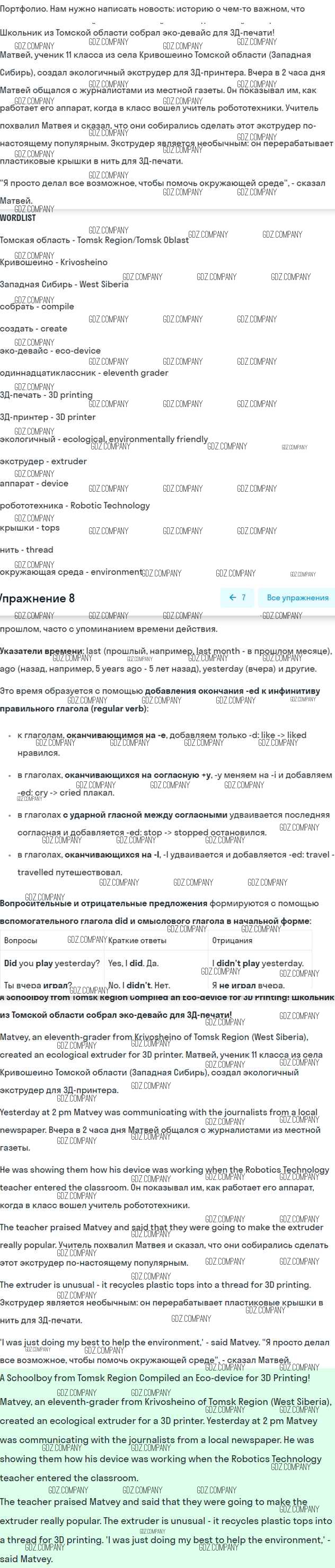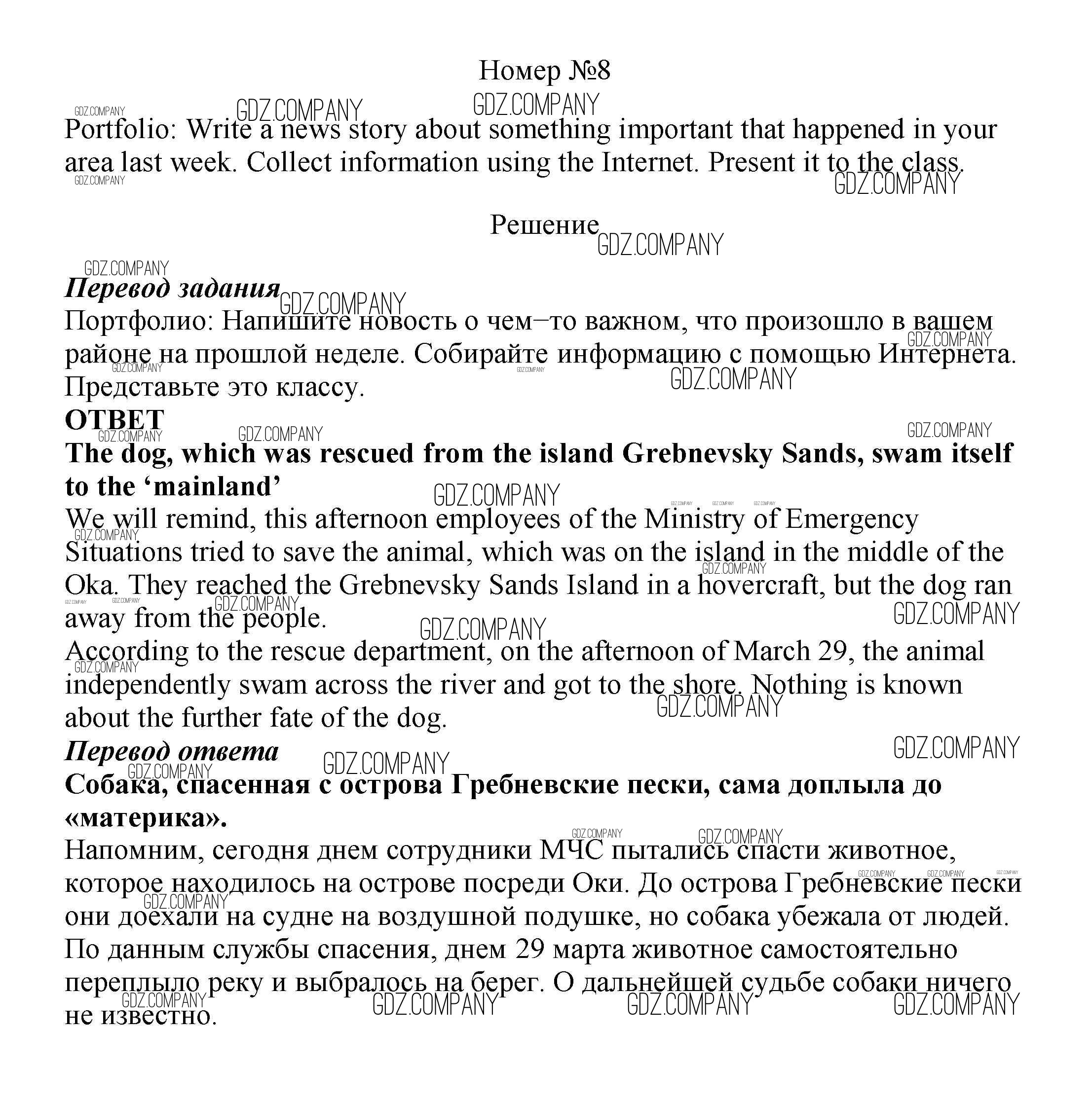 Здесь готовые ответы по Английскому языку за 7 (седьмой) класс от Ваулина, Дули, Эванс, Подоляко Учебник Spotlight (издательство: Просвещение от 2019 г.) № 8