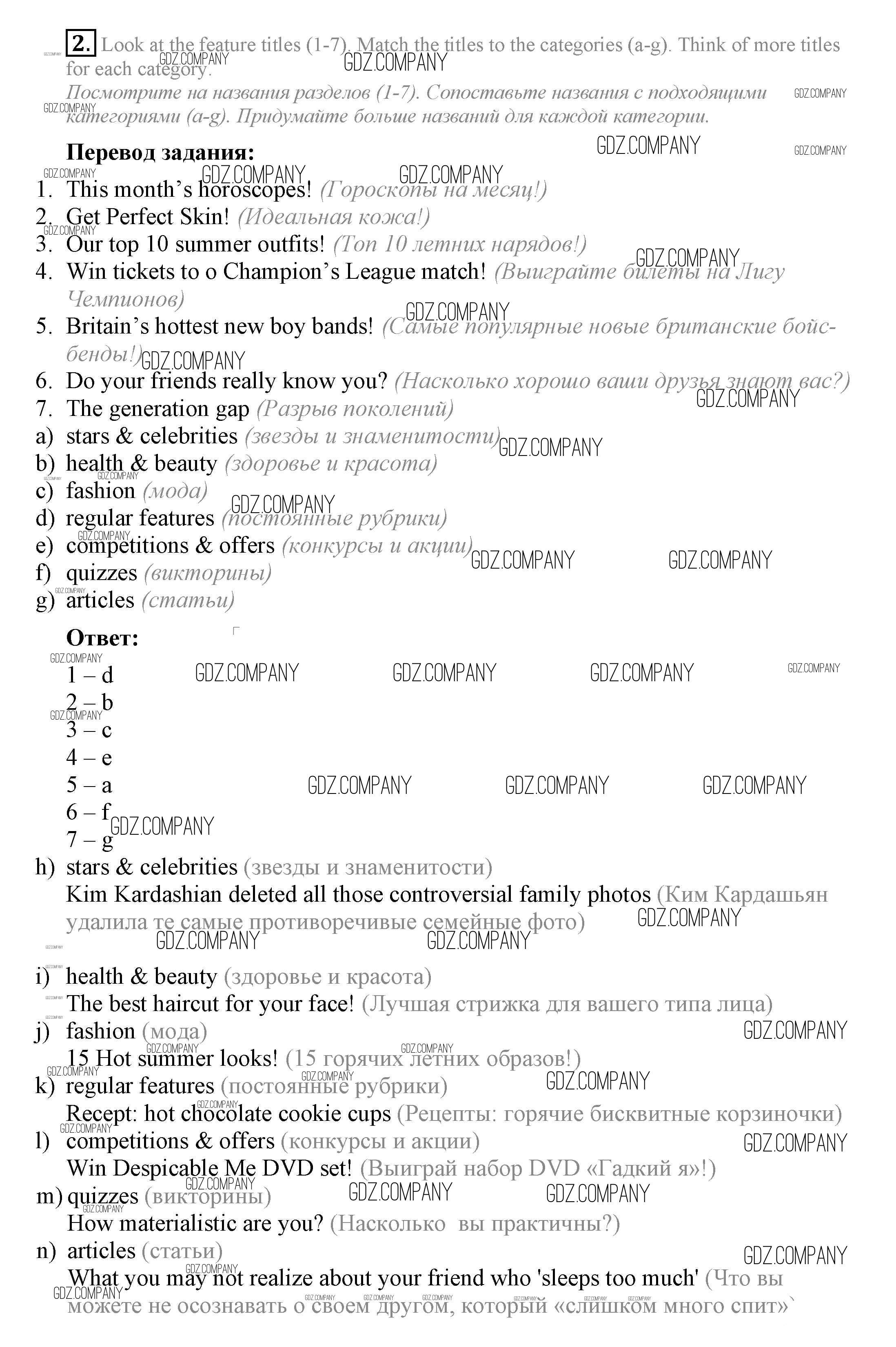 Здесь готовые ответы по Английскому языку за 7 (седьмой) класс от Ваулина, Дули, Эванс, Подоляко Учебник Spotlight (издательство: Просвещение от 2019 г.) № 2