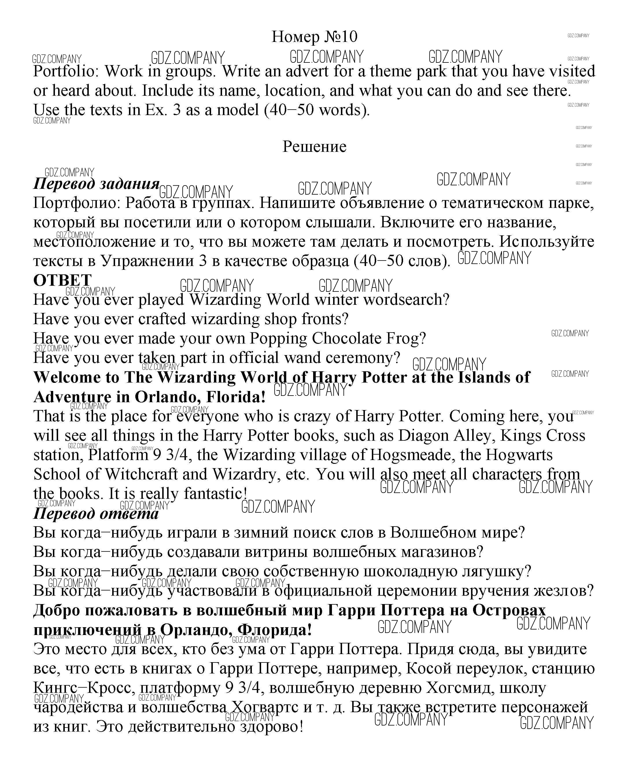 Здесь готовые ответы по Английскому языку за 7 (седьмой) класс от Ваулина, Дули, Эванс, Подоляко Учебник Spotlight (издательство: Просвещение от 2019 г.) № 10