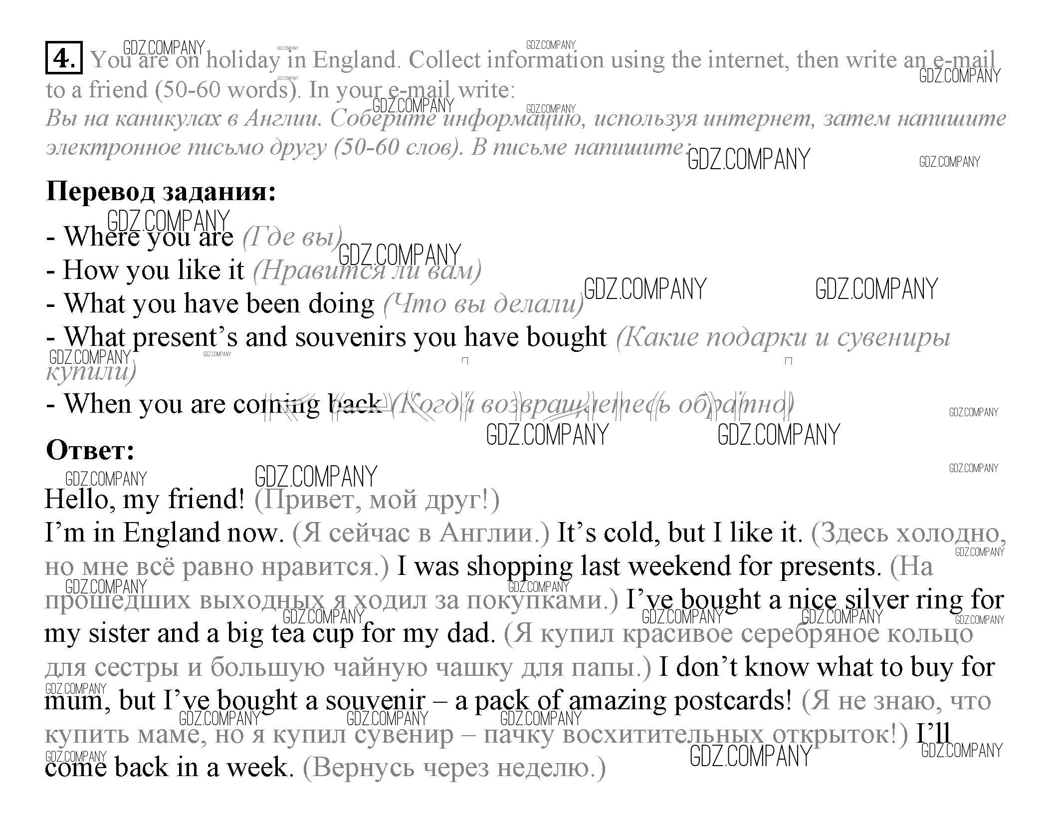 Здесь готовые ответы по Английскому языку за 7 (седьмой) класс от Ваулина, Дули, Эванс, Подоляко Учебник Spotlight (издательство: Просвещение от 2019 г.) № 4