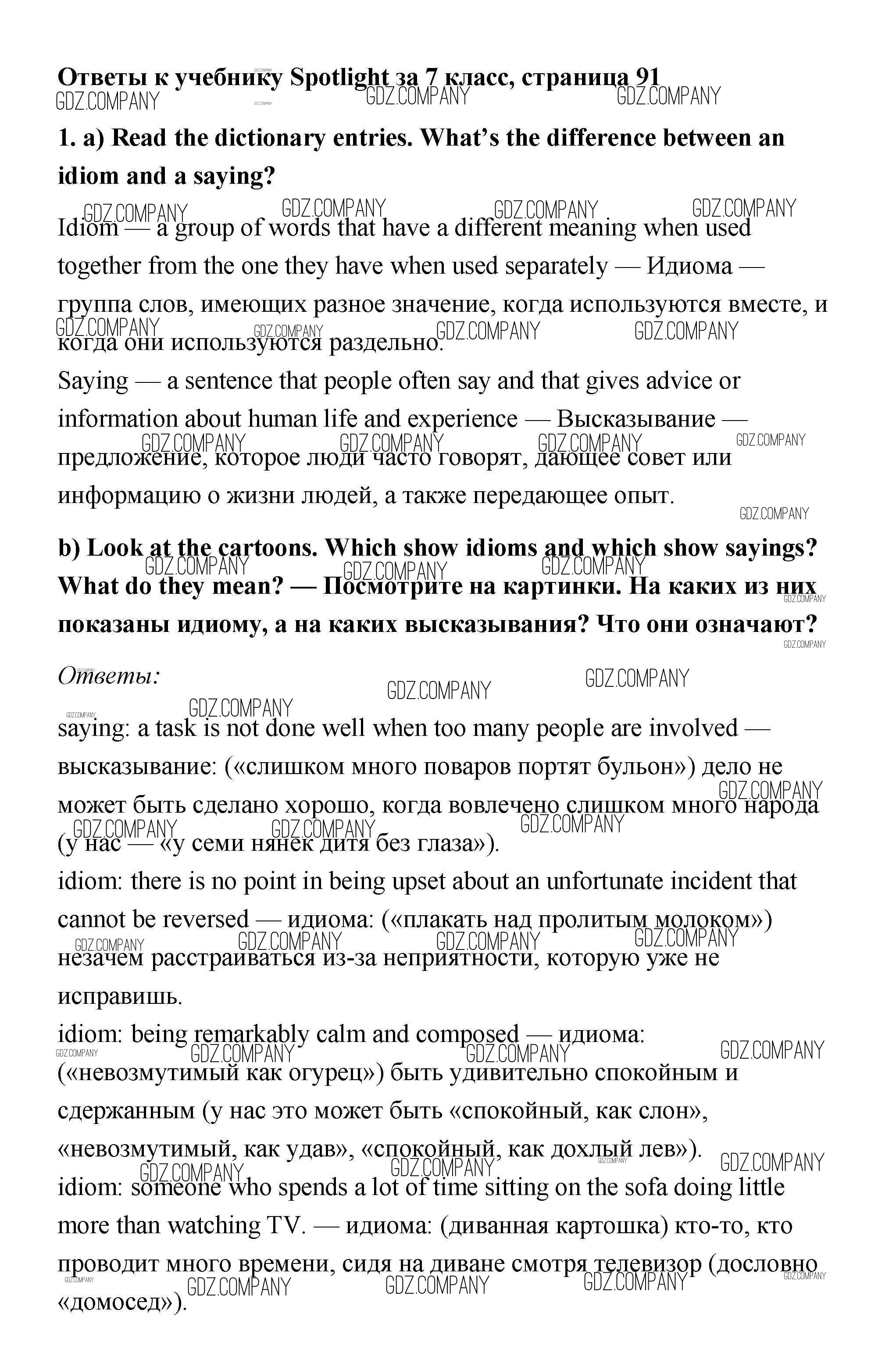 Здесь готовые ответы по Английскому языку за 7 (седьмой) класс от Ваулина, Дули, Эванс, Подоляко Учебник Spotlight (издательство: Просвещение от 2019 г.) № 1