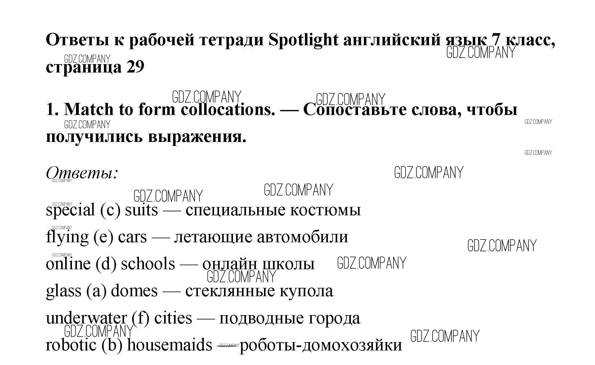 Здесь готовые ответы по Английскому языку за 7 (седьмой) класс от Ваулина, Подоляко, Эванс, Дули Рабочая тетрадь Spotlight (издательство: Просвещение от 2015 г.) № 1