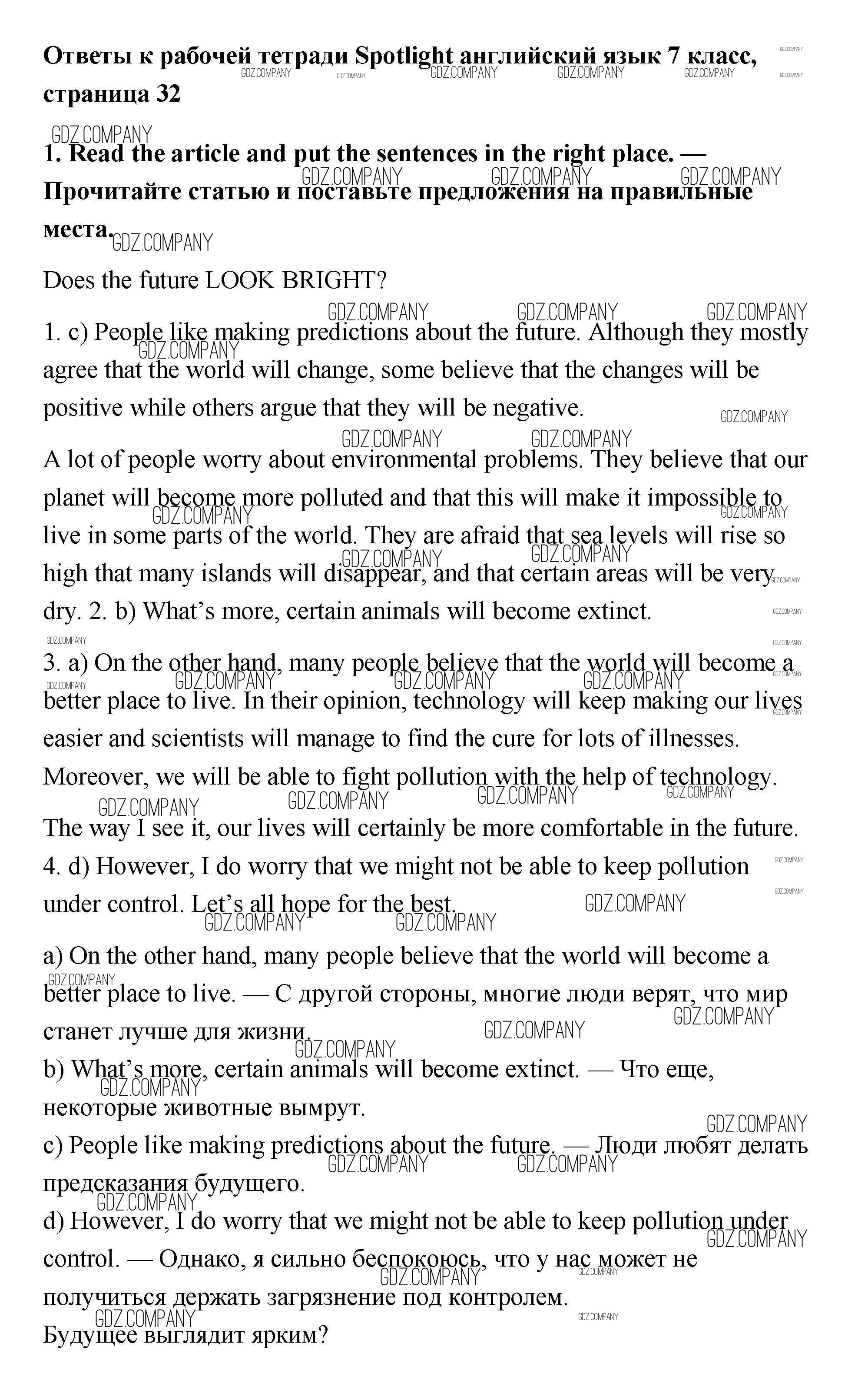 Здесь готовые ответы по Английскому языку за 7 (седьмой) класс от Ваулина, Подоляко, Эванс, Дули Рабочая тетрадь Spotlight (издательство: Просвещение от 2015 г.) № 1