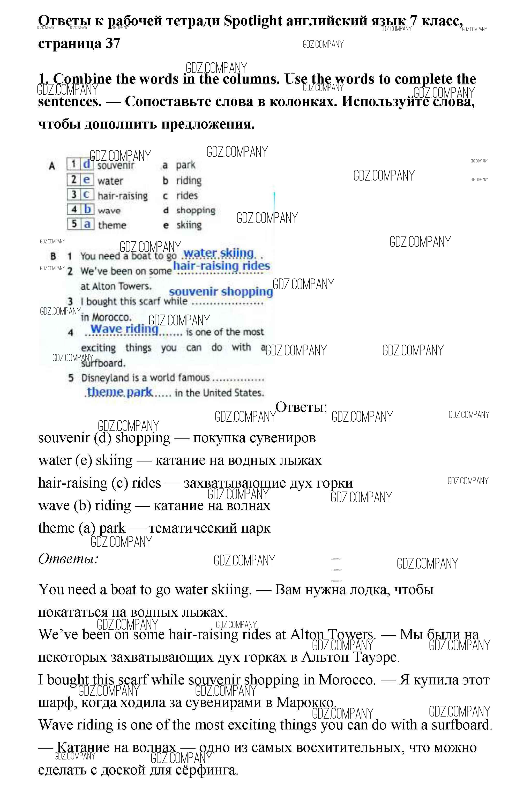 Здесь готовые ответы по Английскому языку за 7 (седьмой) класс от Ваулина, Подоляко, Эванс, Дули Рабочая тетрадь Spotlight (издательство: Просвещение от 2015 г.) № 1