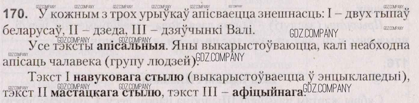 Здесь готовые ответы по Белорусскому языку за 7 (седьмой) класс от Валочка, Язерская Учебник (издательство: Национальный институт образования от 2020 г.) № 170