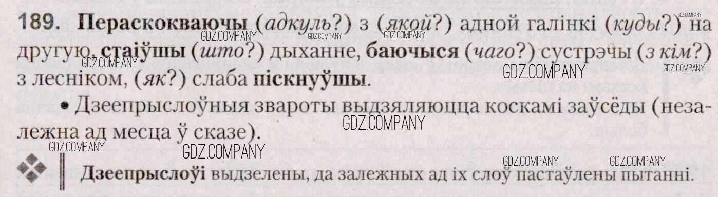 Здесь готовые ответы по Белорусскому языку за 7 (седьмой) класс от Валочка, Язерская Учебник (издательство: Национальный институт образования от 2020 г.) № 189