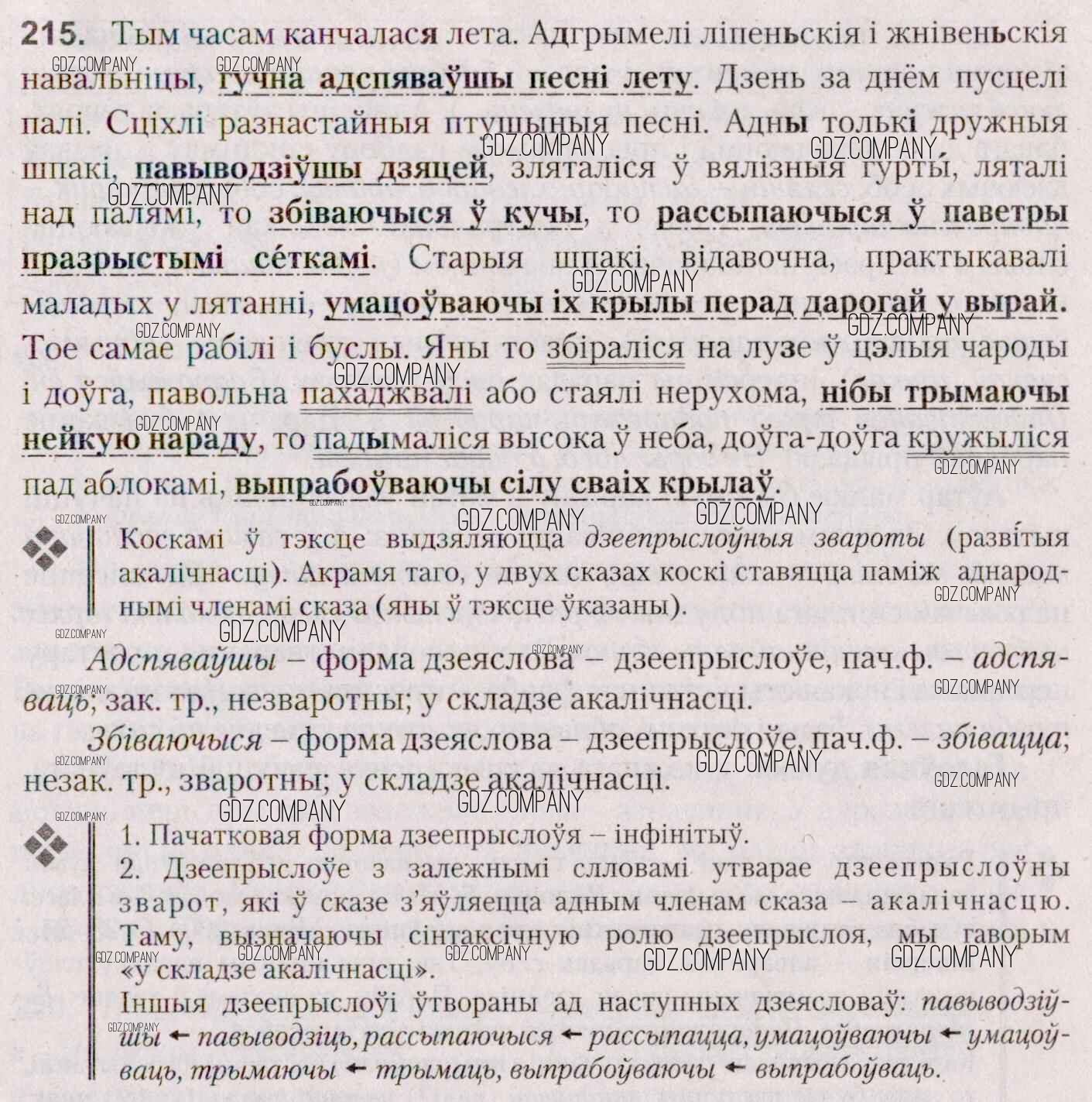 Здесь готовые ответы по Белорусскому языку за 7 (седьмой) класс от Валочка, Язерская Учебник (издательство: Национальный институт образования от 2020 г.) № 215