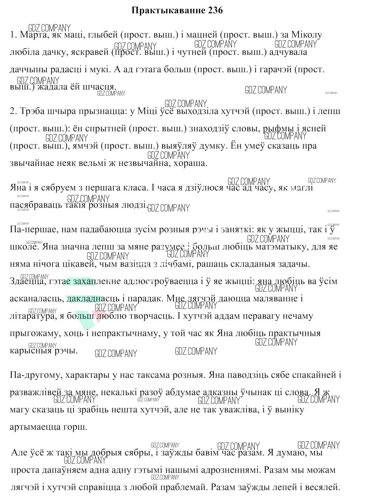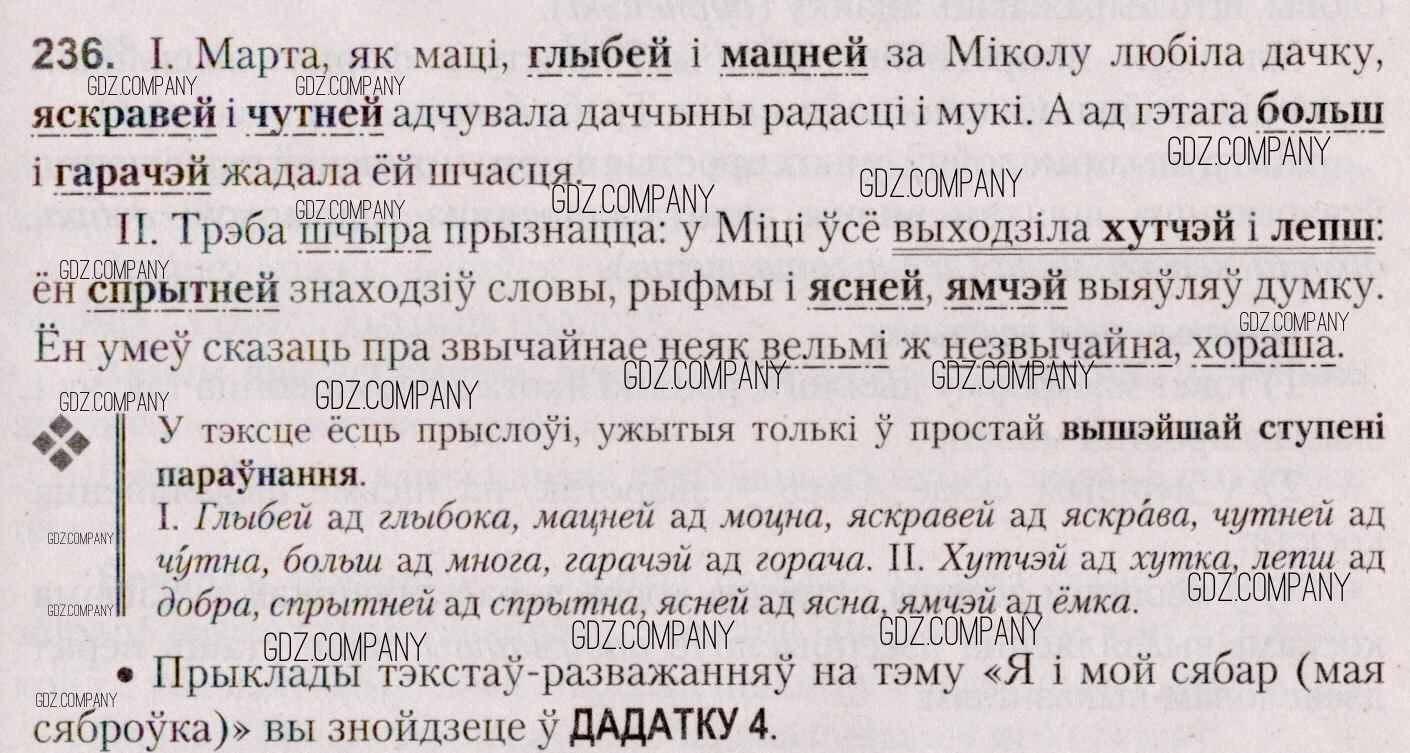 Здесь готовые ответы по Белорусскому языку за 7 (седьмой) класс от Валочка, Язерская Учебник (издательство: Национальный институт образования от 2020 г.) № 236