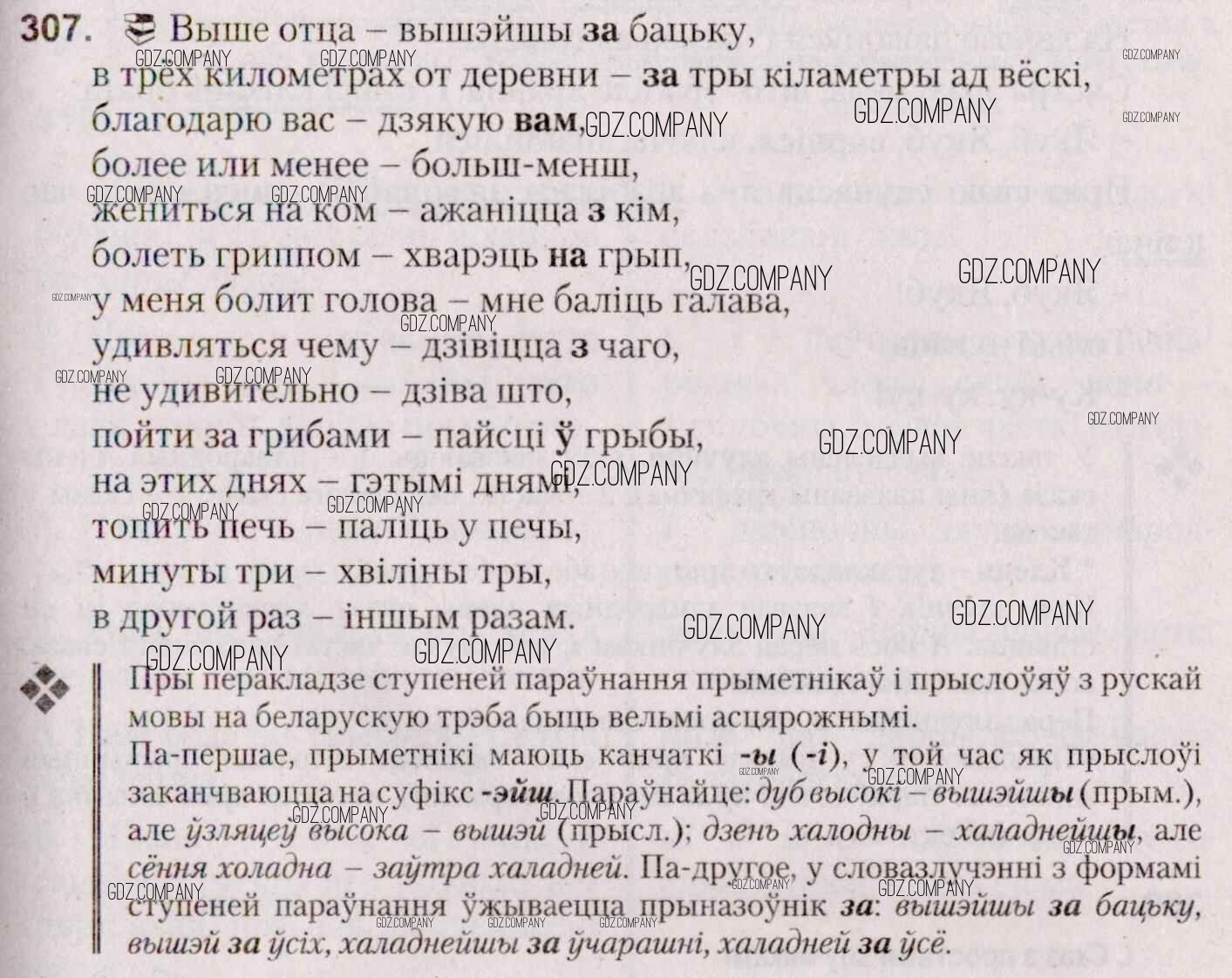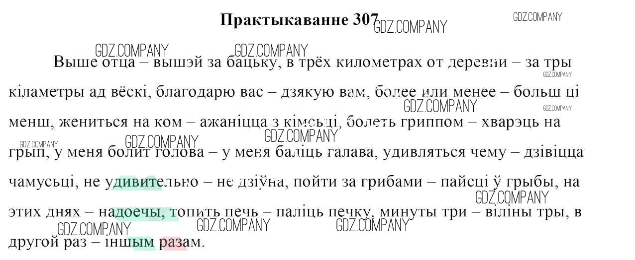 Здесь готовые ответы по Белорусскому языку за 7 (седьмой) класс от Валочка, Язерская Учебник (издательство: Национальный институт образования от 2020 г.) № 307