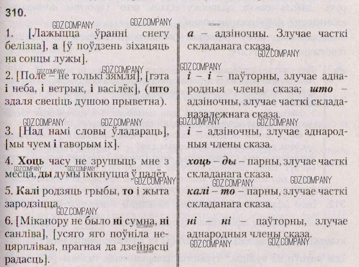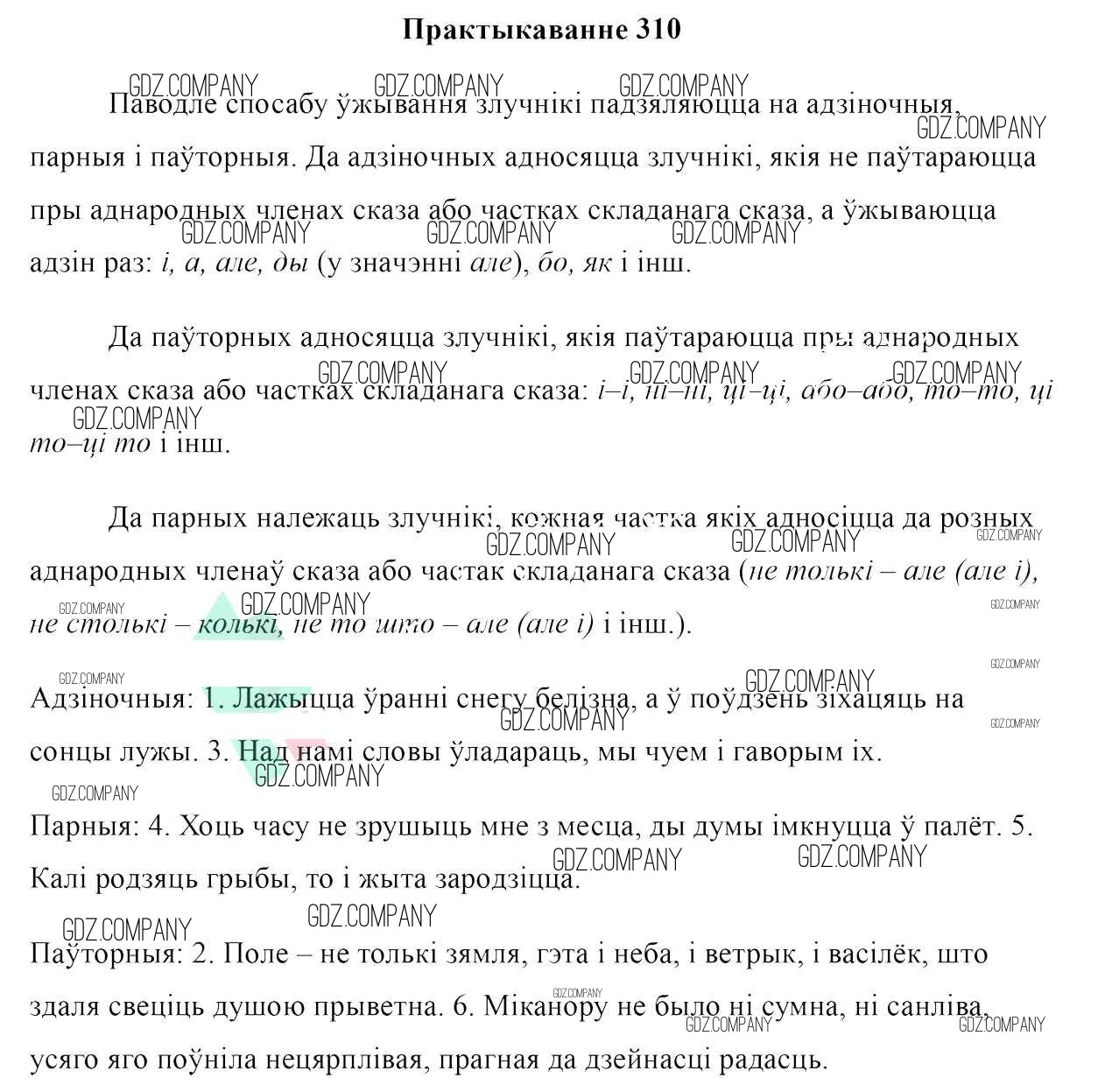 Здесь готовые ответы по Белорусскому языку за 7 (седьмой) класс от Валочка, Язерская Учебник (издательство: Национальный институт образования от 2020 г.) № 310