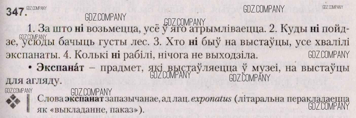 Здесь готовые ответы по Белорусскому языку за 7 (седьмой) класс от Валочка, Язерская Учебник (издательство: Национальный институт образования от 2020 г.) № 347