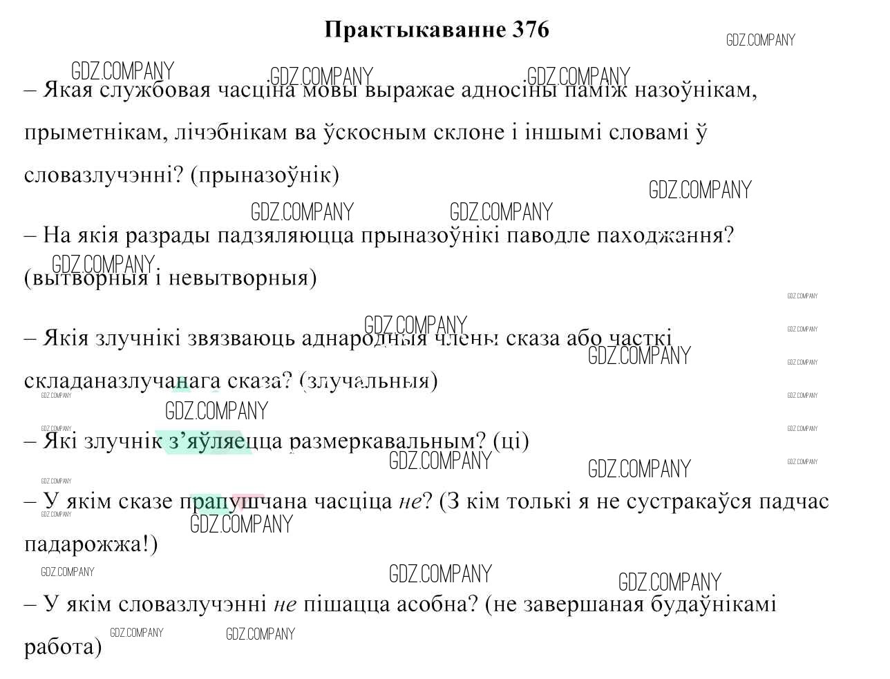 Здесь готовые ответы по Белорусскому языку за 7 (седьмой) класс от Валочка, Язерская Учебник (издательство: Национальный институт образования от 2020 г.) № 376