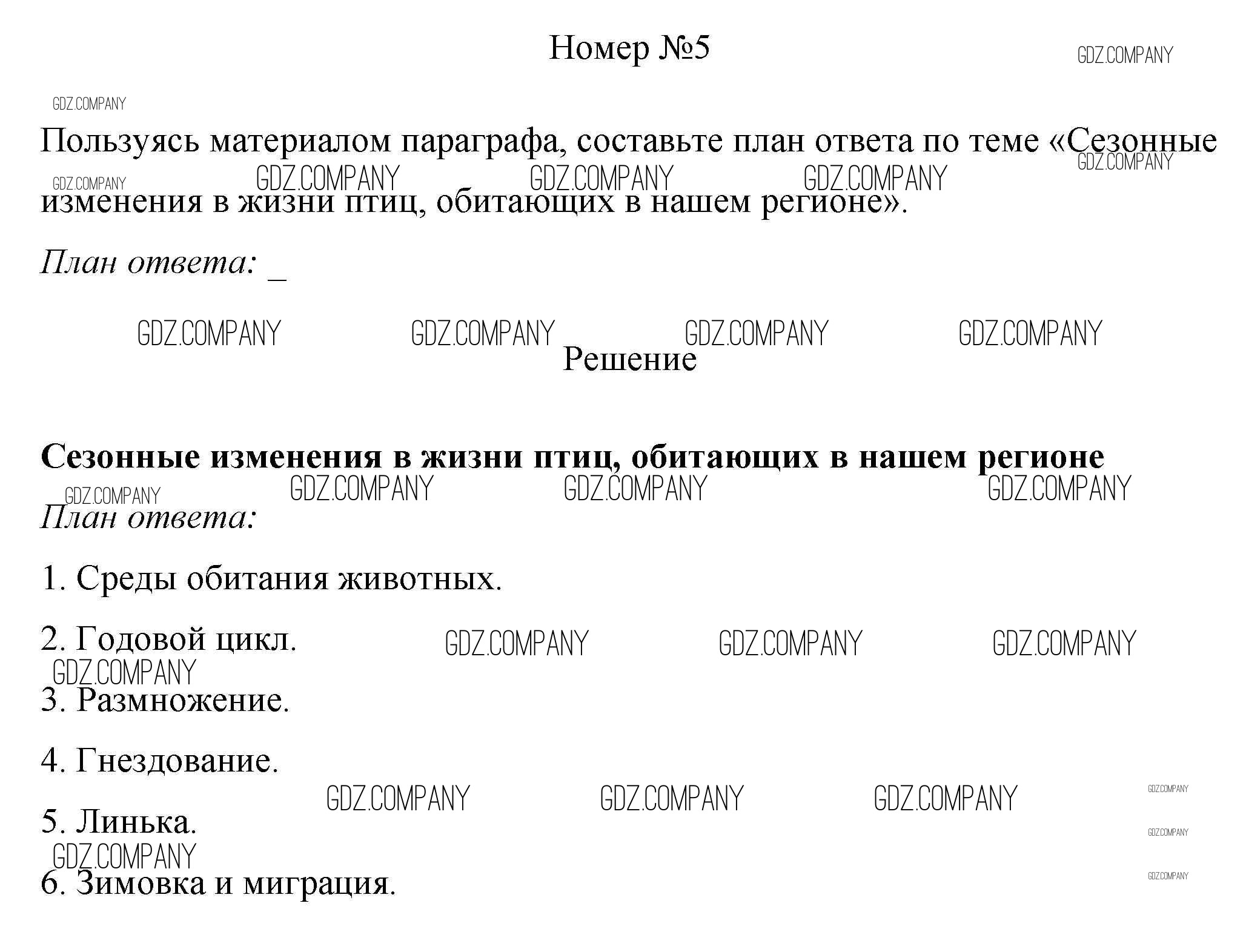 Здесь готовые ответы по Биологии за 7 (седьмой) класс от Пасечник Рабочая тетрадь Линия жизни (издательство: Просвещение от 2016 г.) № 5