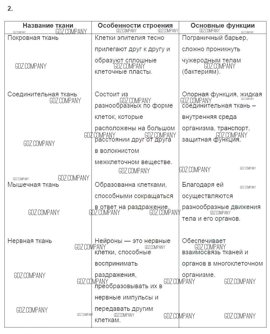 тетрадь 2016 / §37. ткани, органы и системы органов многоклеточных животных / 2
