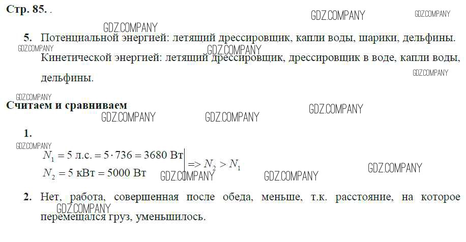 Здесь готовые ответы по Физике за 7 (седьмой) класс от Артеменков, Белага, Воронцова, Ломаченков, Панебратцев Тетрадь-тренажер Сферы (издательство: Просвещение от 2016 г.) № стр.85