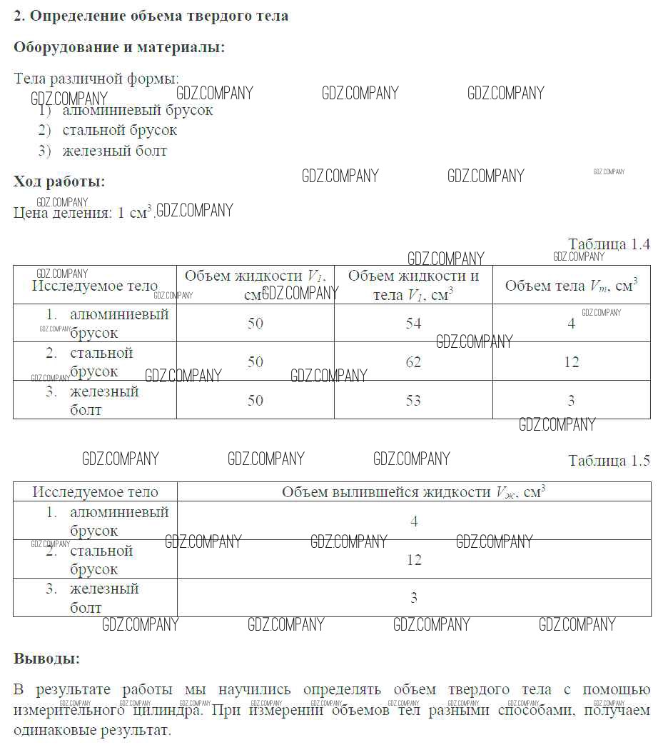 Здесь готовые ответы по Физике за 7 (седьмой) класс от Белага, Воронцова, Жумаев, Ломаченков, Панебратцев Тетрадь-практикум Сферы (издательство: Просвещение от 2012 г.) № №2. Определение объема твердого тела