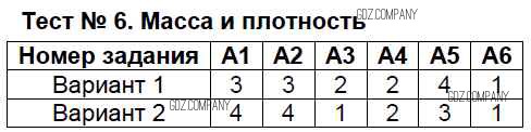 Здесь готовые ответы по Физике за 7 (седьмой) класс от Бобошина Контрольно-измерительные материалы (КИМ) (издательство: Экзамен от 2014 г.) № Тест №6. Масса и плотность