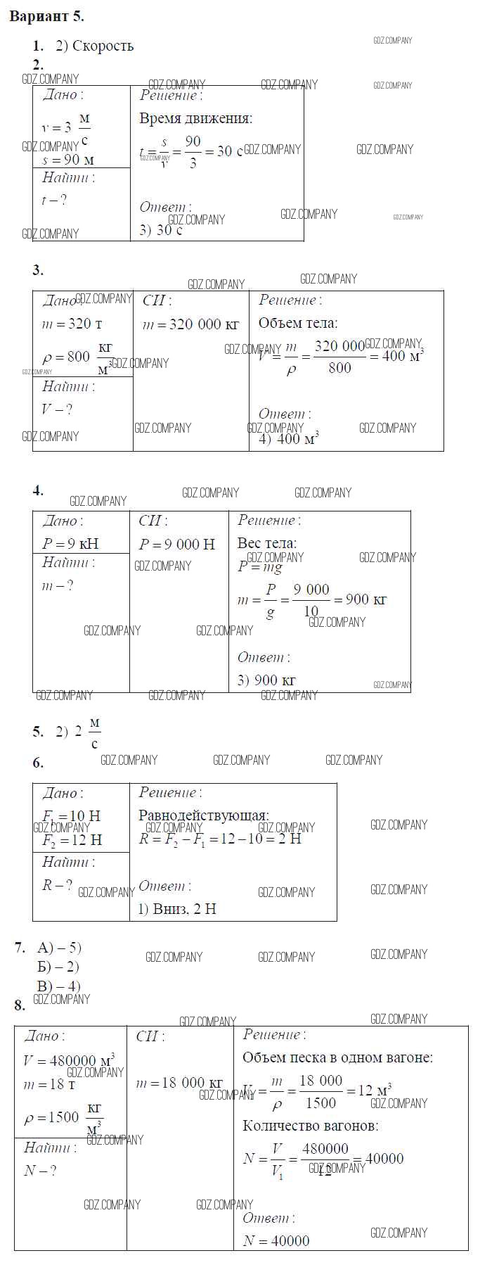 Здесь готовые ответы по Физике за 7 (седьмой) класс от Громцева Контрольные и самостоятельные работы УМК (издательство: Экзамен от 2020 г.) № Вар. 5