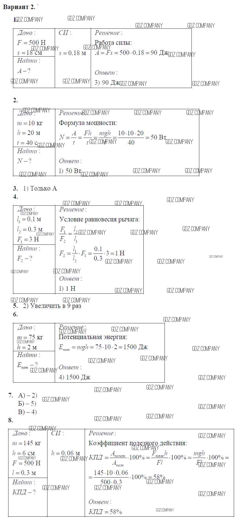 контрольная работа / глава 4. работа и мощность. Энергия / вар. 2