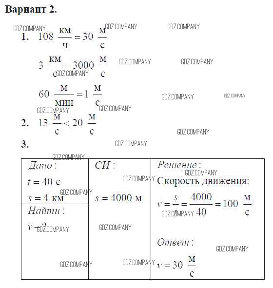 самостоятельная работа / ср №11. скорость. единицы скорости / вар. 2