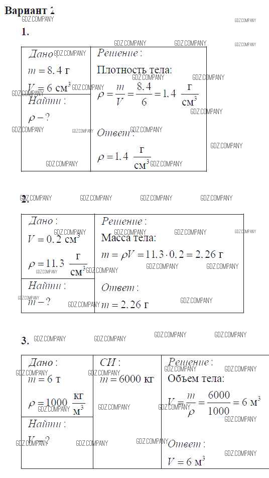 самостоятельная работа / ср №16. расчет массы и объема тела по его плотности / вар. 2