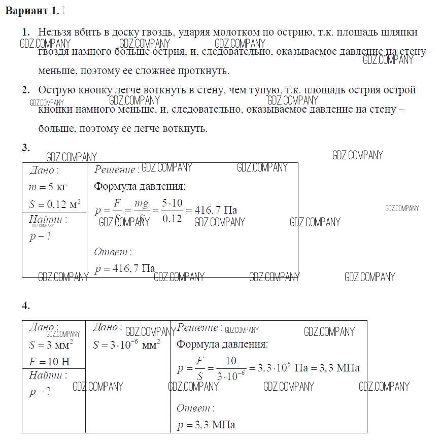 самостоятельная работа / ср №24. давление. единицы давления / вар. 1