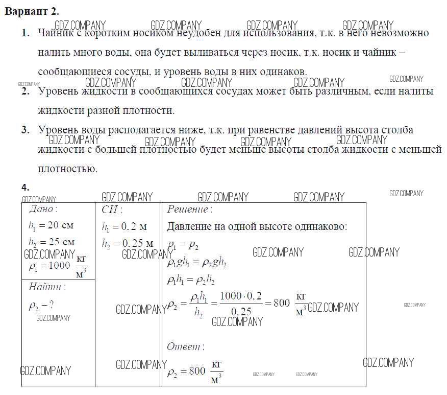 самостоятельная работа / ср №30. сообщающиеся сосуды / вар. 2