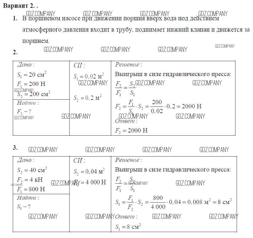 самостоятельная работа / ср №34. поршневой жидкостный насос. гидравлический пресс / вар. 2