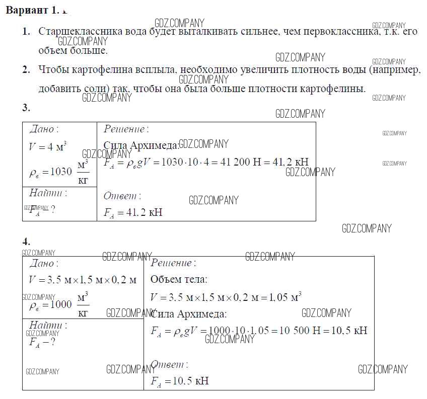 самостоятельная работа / ср №37. Архимедова сила / вар. 1