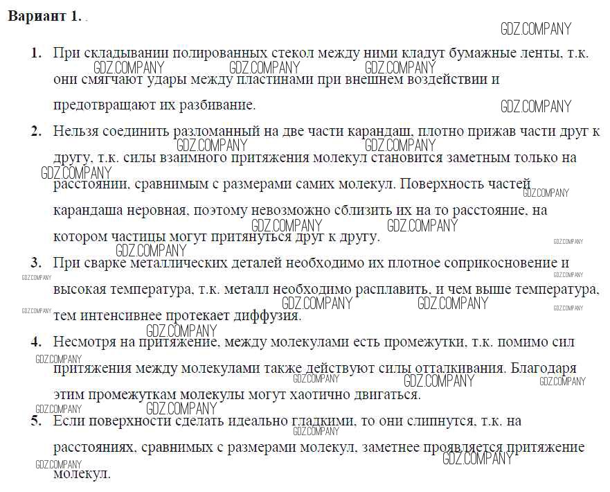 самостоятельная работа / ср №8. взаимное притяжение и отталкивание молекул / вар. 1