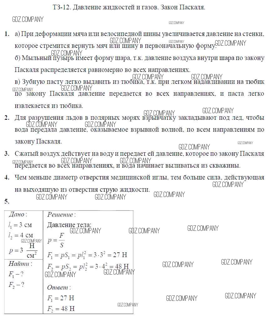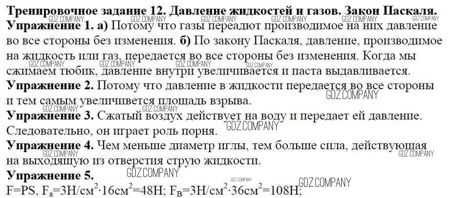 Здесь готовые ответы по Физике за 7 (седьмой) класс от Марон Дидактические материалы Вертикаль (издательство: Дрофа от 2019 г.) № Задание №12. Давление жидкостей и газов. Закон Паскаля