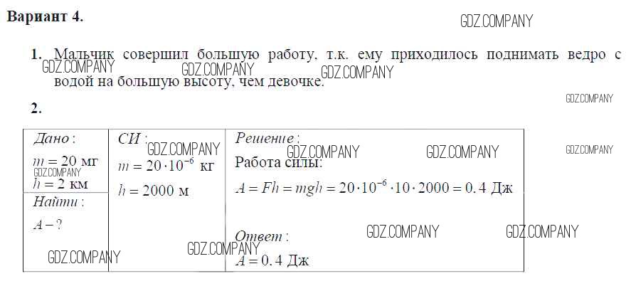 Здесь готовые ответы по Физике за 7 (седьмой) класс от Марон Дидактические материалы Вертикаль (издательство: Дрофа от 2019 г.) № Вариант №4