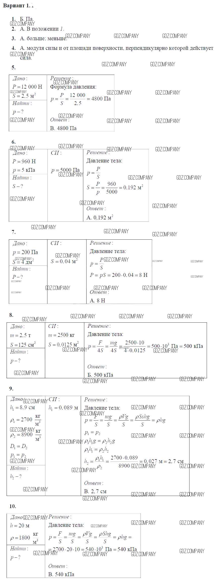Здесь готовые ответы по Физике за 7 (седьмой) класс от Марон Дидактические материалы Вертикаль (издательство: Дрофа от 2019 г.) № Вариант №1