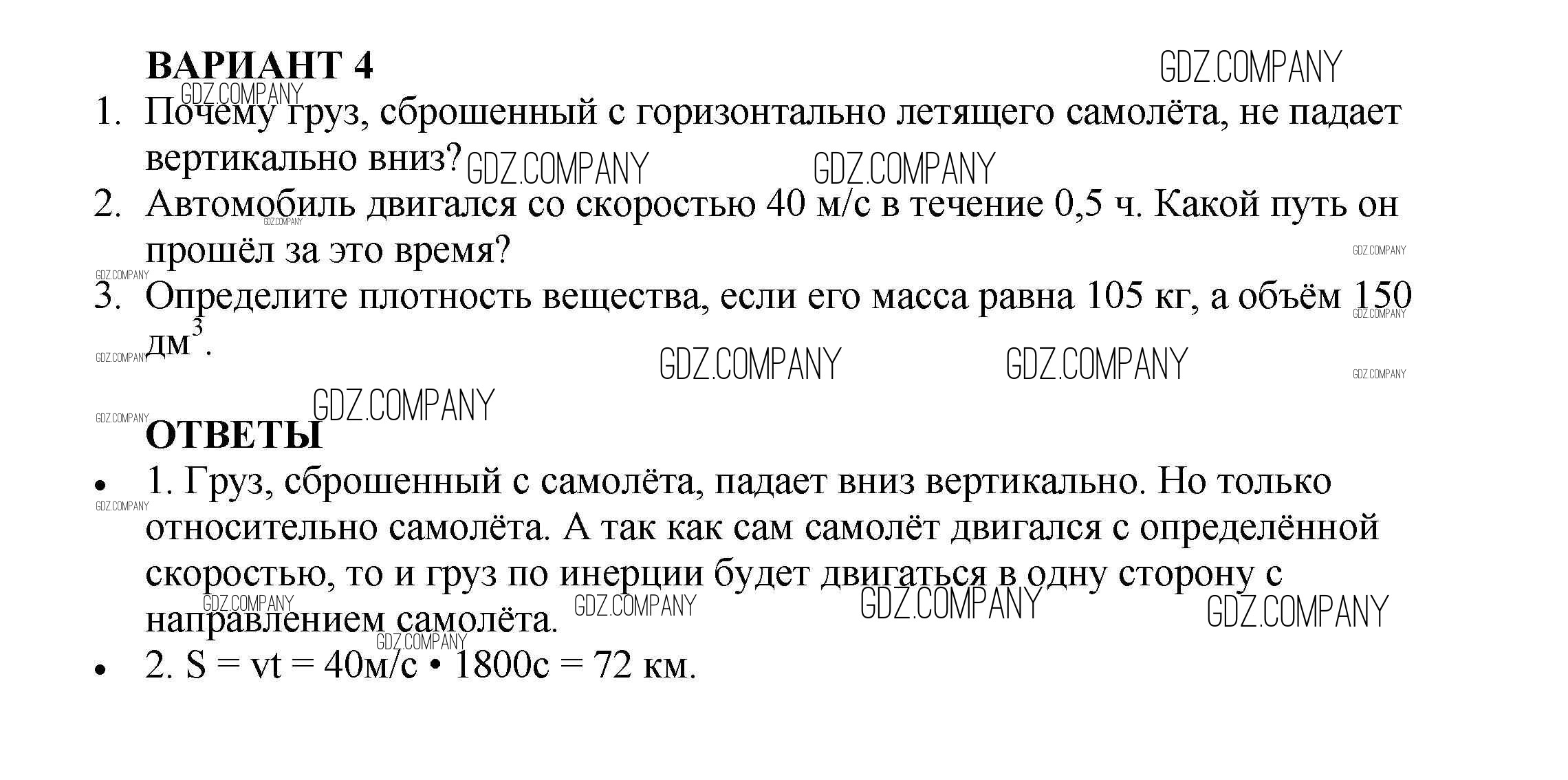 Здесь готовые ответы по Физике за 7 (седьмой) класс от Марон Самостоятельные и контрольные работы Вертикаль (издательство: Дрофа от 2016 г.) № Вариант №4