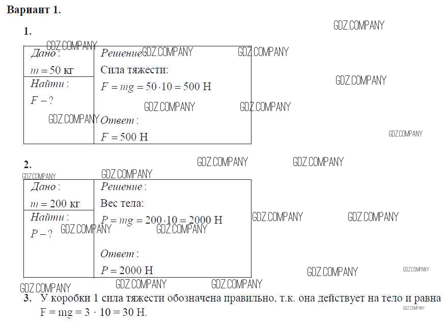 самостоятельная работа / ср-№28. единицы силы. связь между силой тяжести и массой тела / вариант №1