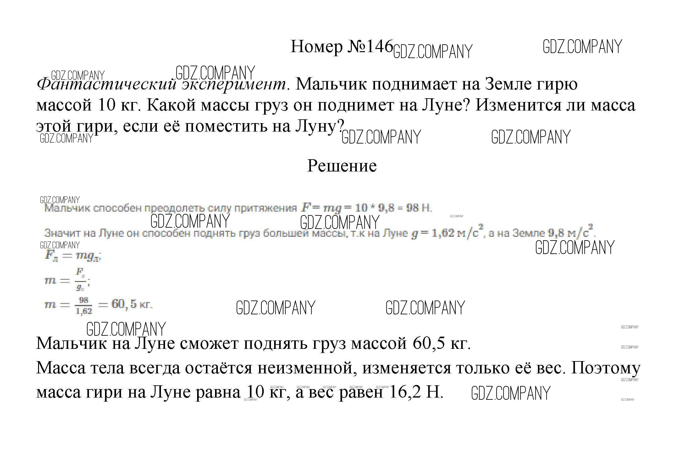 Здесь готовые ответы по Физике за 7 (седьмой) класс от Марон, Позойский Сборник вопросов и задач Вертикаль (издательство: Дрофа от 2013 г.) № 146