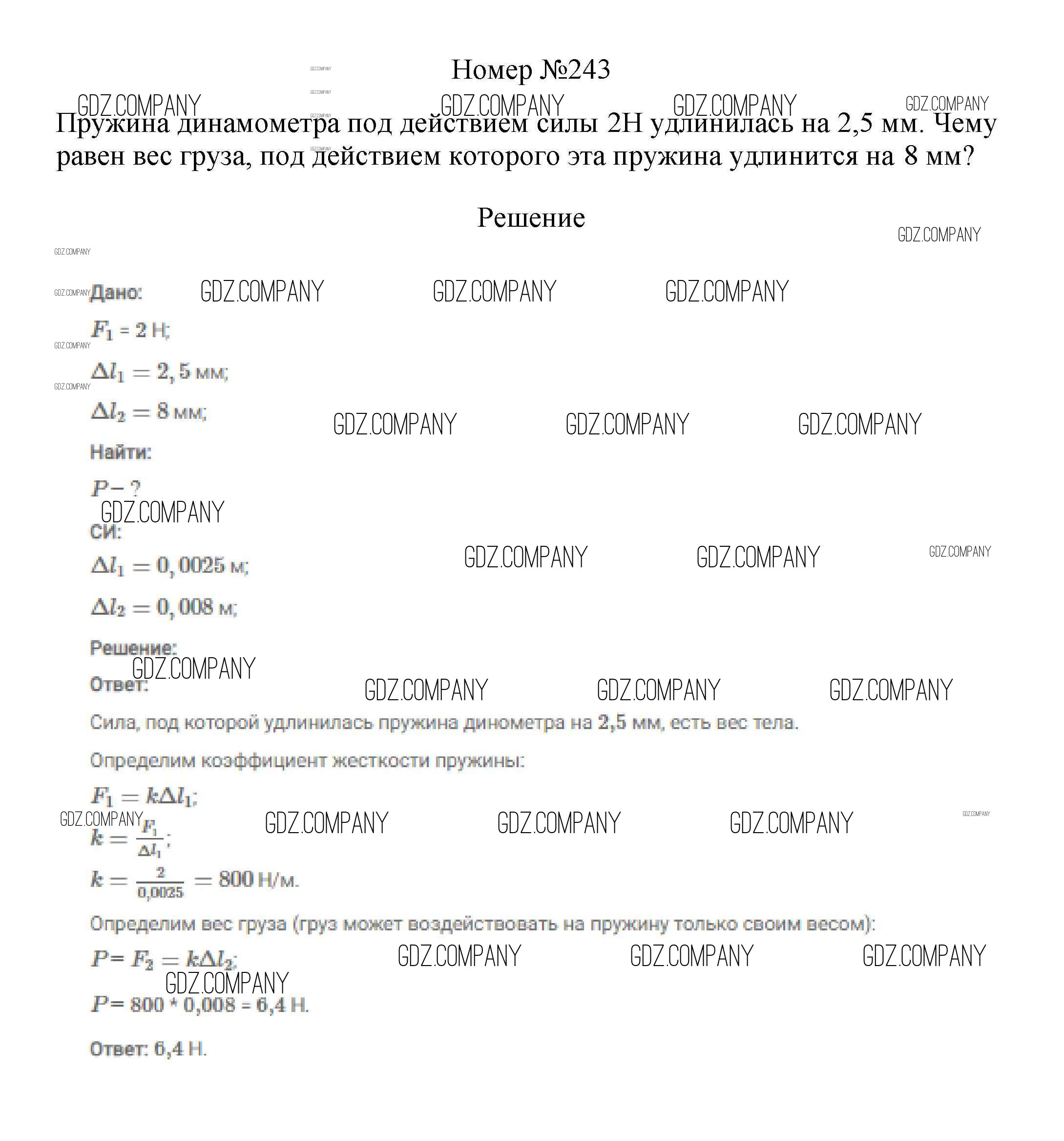 Здесь готовые ответы по Физике за 7 (седьмой) класс от Марон, Позойский Сборник вопросов и задач Вертикаль (издательство: Дрофа от 2013 г.) № 243