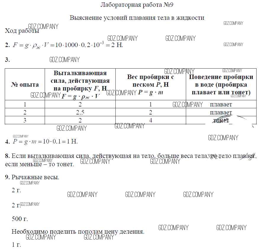 Здесь готовые ответы по Физике за 7 (седьмой) класс от Минькова, Иванова Тетрадь для лабораторных работ УМК (издательство: Экзамен от 2017 г.) № ЛР №9. Выяснение условий плавания тела в жидкости