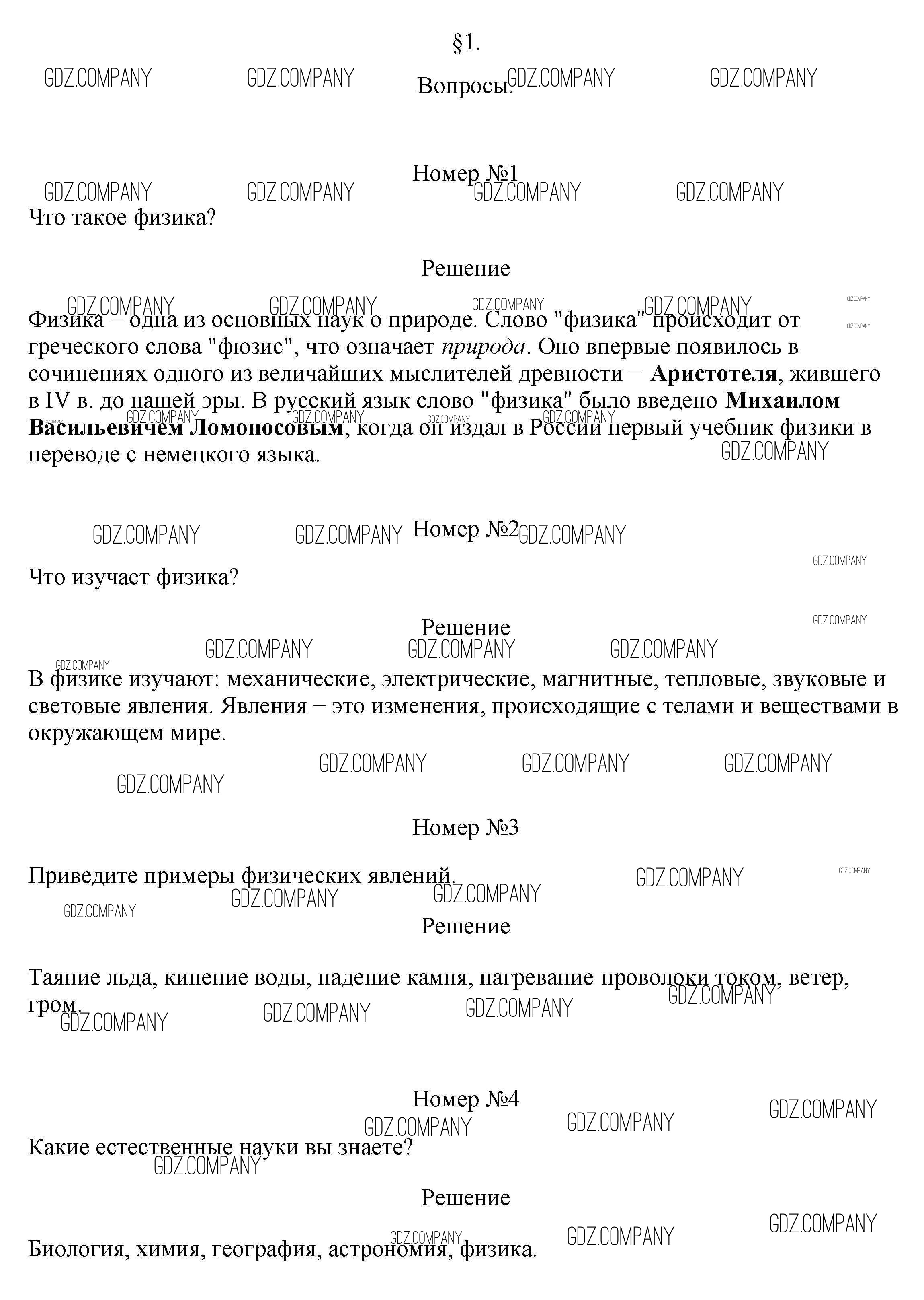 Здесь готовые ответы по Физике за 7 (седьмой) класс от Перышкин Учебник Вертикаль (издательство: Дрофа от 2016 г.) № §1