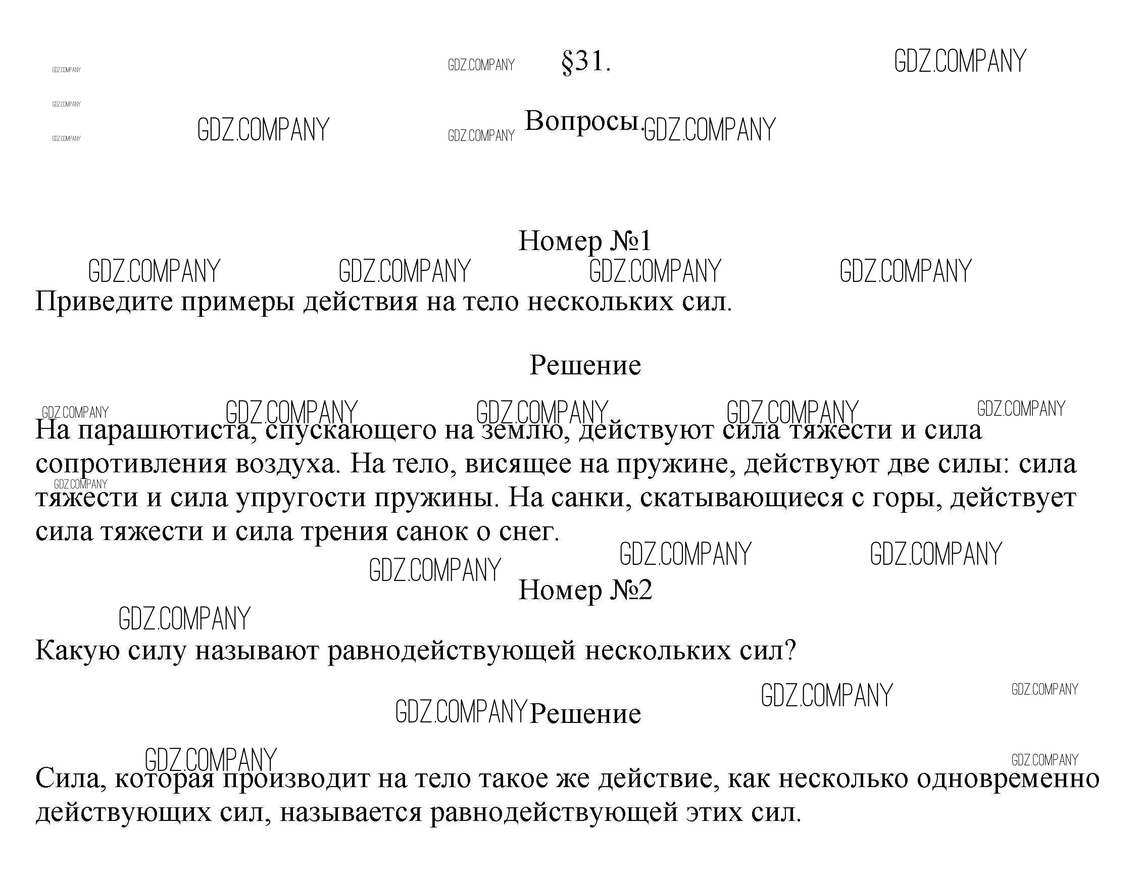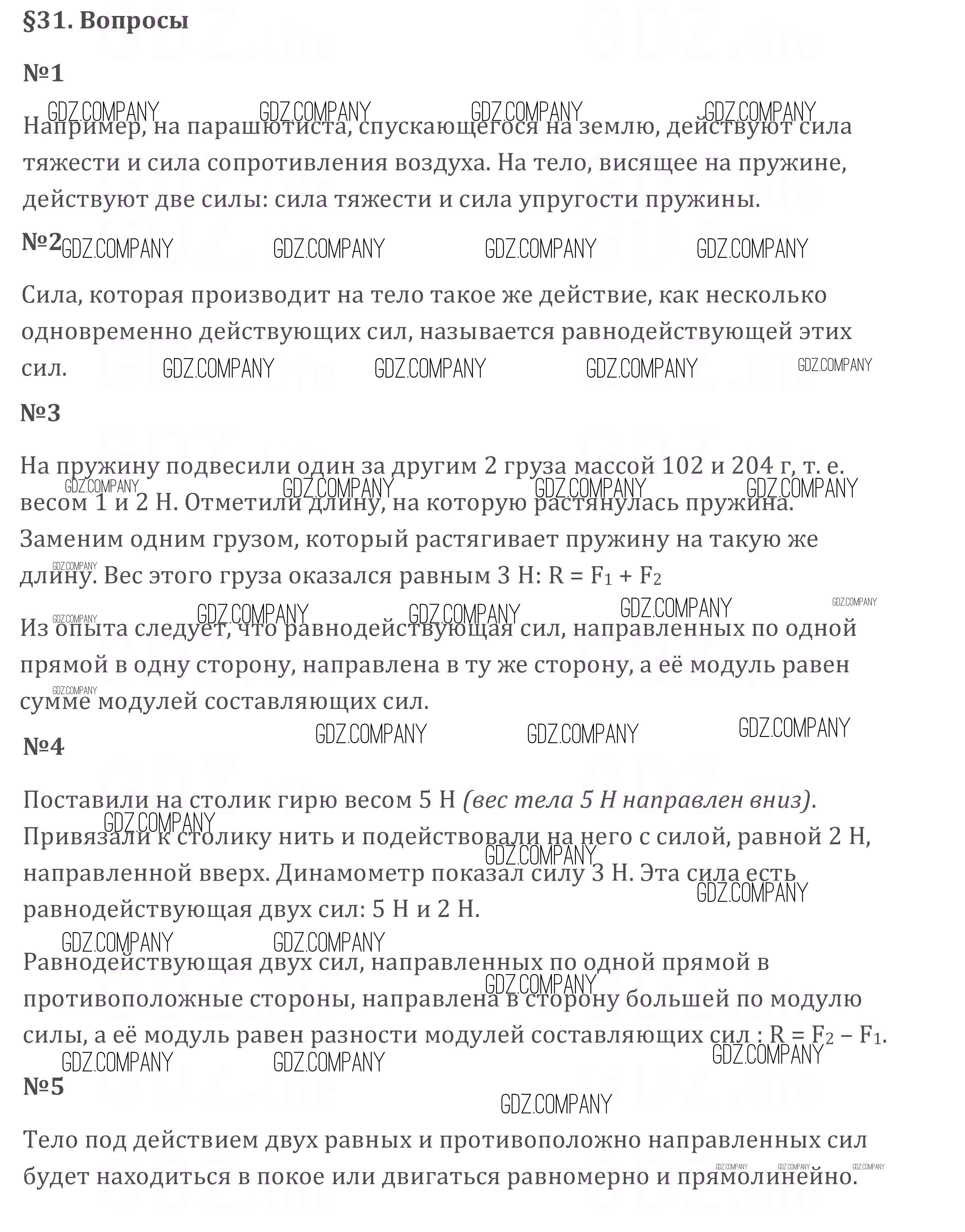 Здесь готовые ответы по Физике за 7 (седьмой) класс от Перышкин Учебник Вертикаль (издательство: Дрофа от 2016 г.) № §31