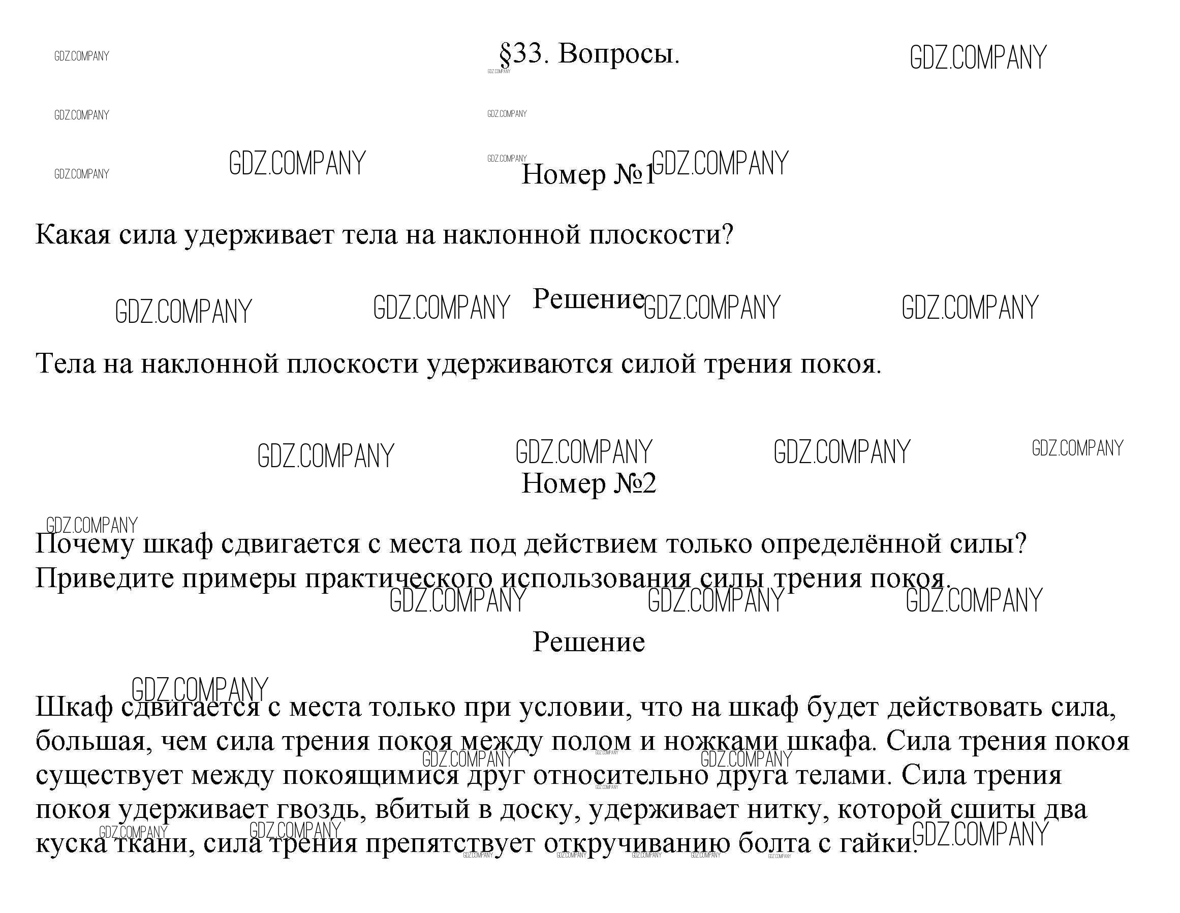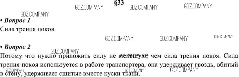 Здесь готовые ответы по Физике за 7 (седьмой) класс от Перышкин Учебник Вертикаль (издательство: Дрофа от 2016 г.) № §33