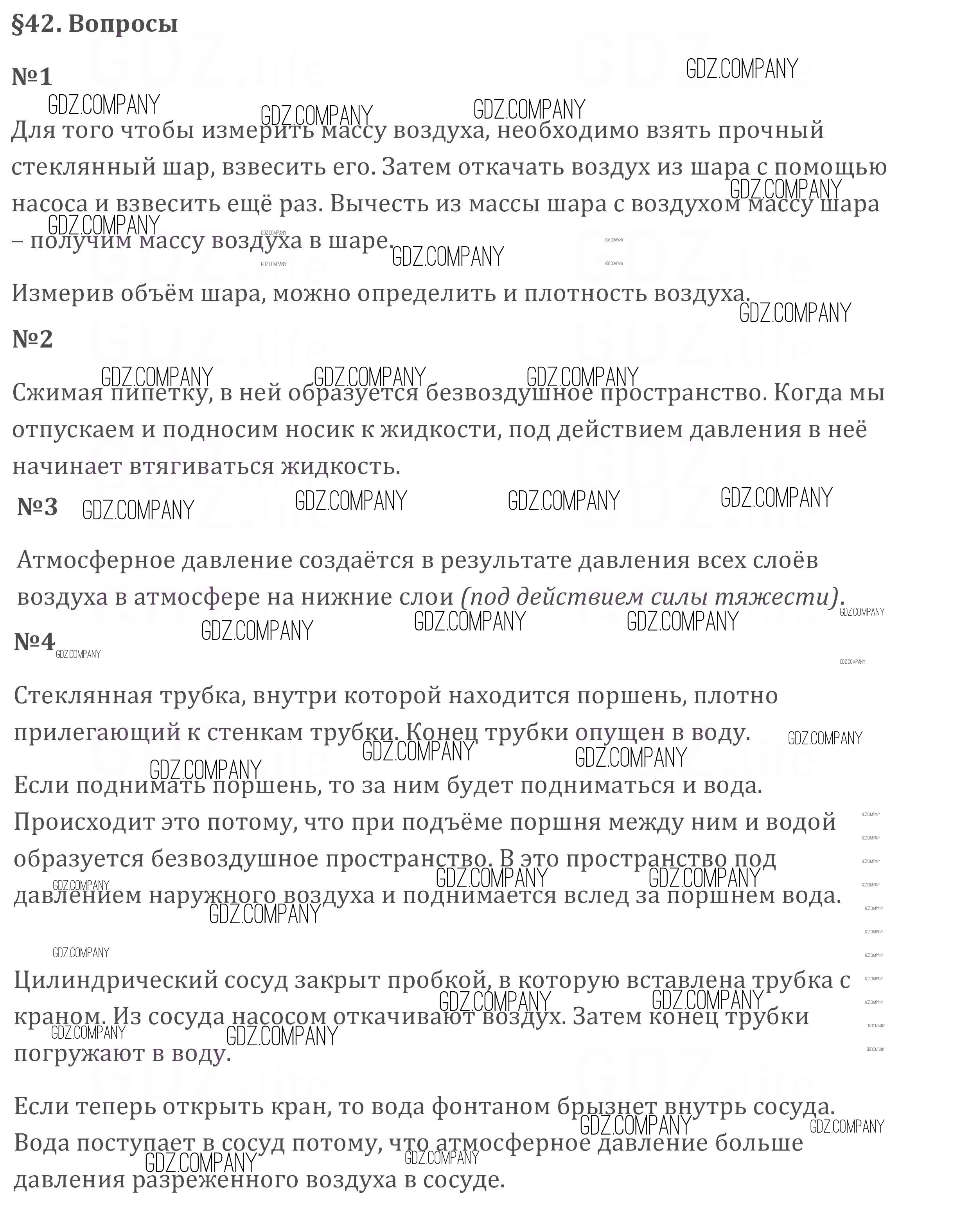 Здесь готовые ответы по Физике за 7 (седьмой) класс от Перышкин Учебник Вертикаль (издательство: Дрофа от 2016 г.) № §42