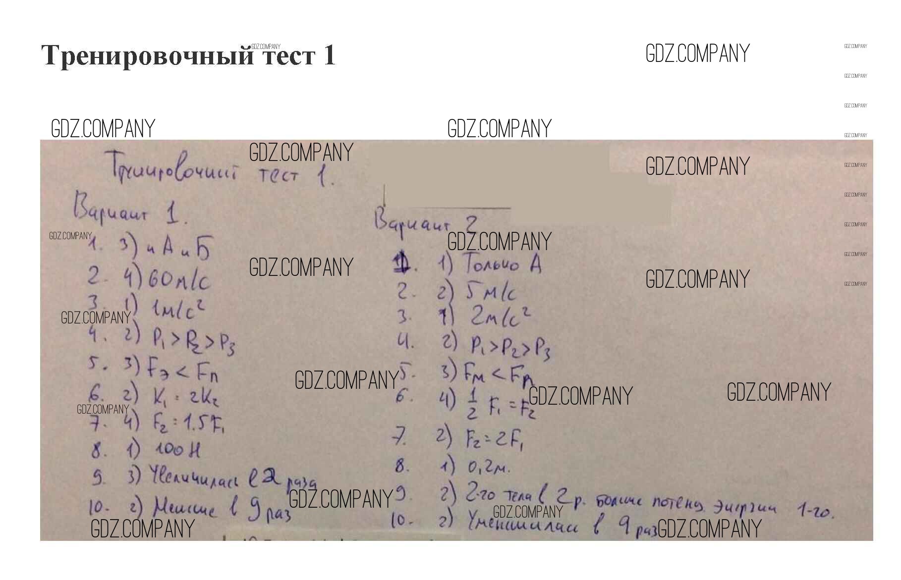 механические явления / тренировочный тест 1 / 1