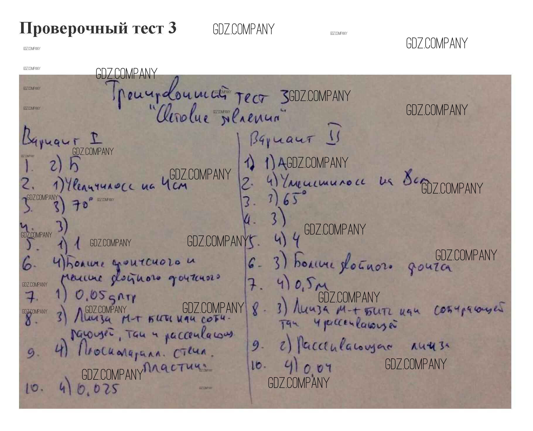 световые явления / тренировочный тест 3 / 3