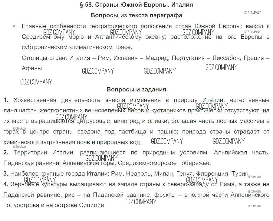 Здесь готовые ответы по Географии за 7 (седьмой) класс от Коринская, Душина, Щенев Учебник (издательство: Дрофа от 2017 г.) № 58